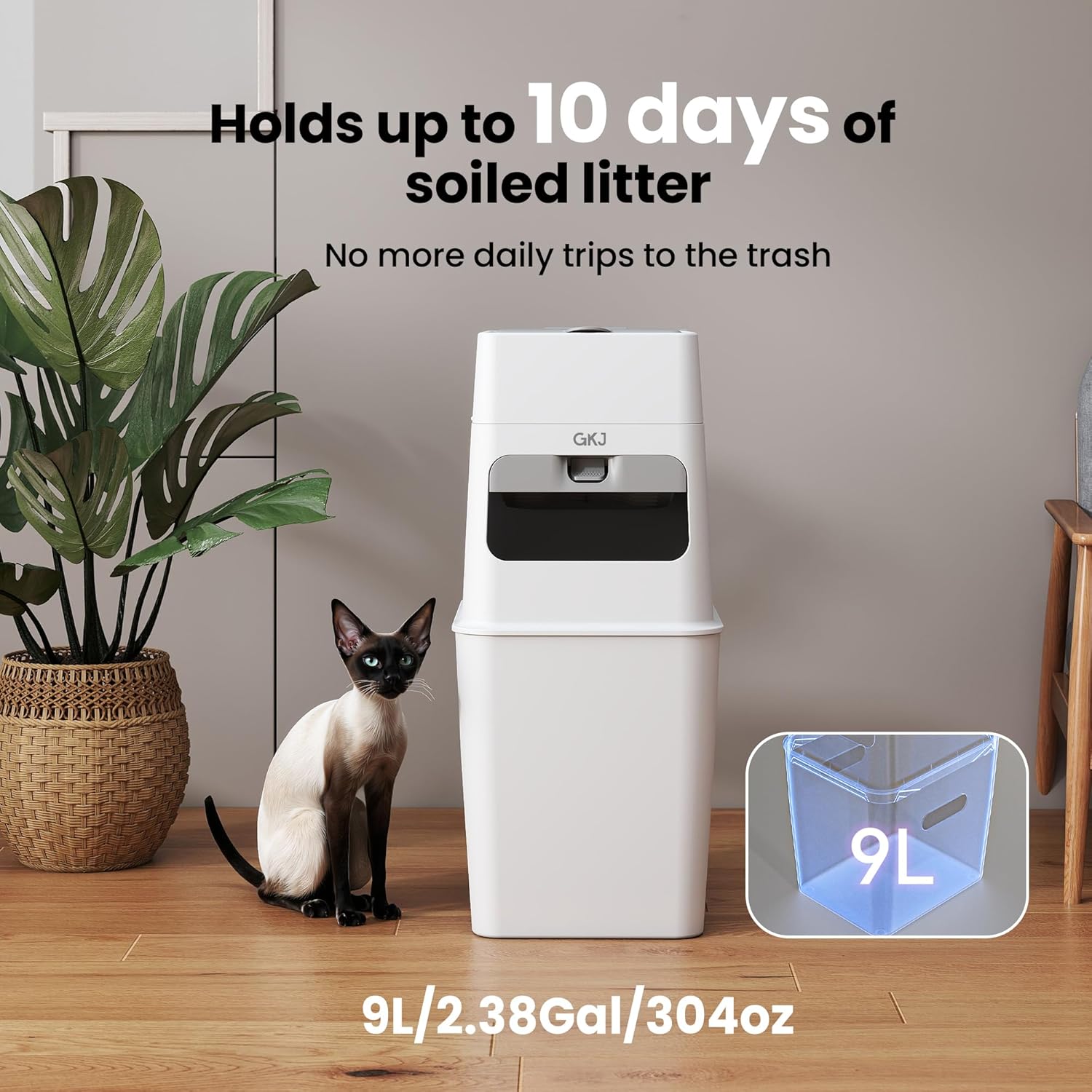 - 10-Day Freedom: No more daily trash trips. Our 9L cat litter disposal holds 10 days of waste for one cat. GKJ cat trash can comes with a refill bag (lasts 4 months!), so you start saving immediately.