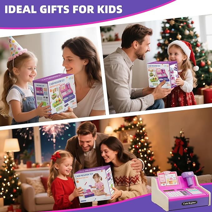 - 【Ideal Gifts for Kids Ages 3–8】 Designed for boys, girls, toddlers, and preschoolers age 3 4 5 6 7 8, this play cash register makes a wonderful birthday, holiday, Halloween, or Christmas gift. Made with non-toxic materials that comply with safety standards and rounded smooth edges, it ensures child safety and long-lasting use. Inspire creativity and learning with this fun and educational role-playing set!