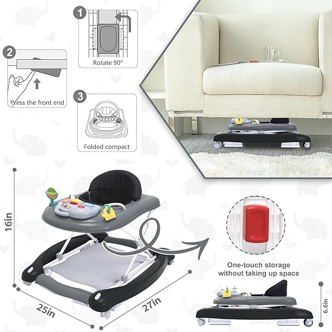 - Easy To Assemble And Fold: The baby boy and girl walker is easy to assemble and folds the walker with wheels in just a few steps, then unfolds and sits baby down; the baby girl walker can be stored under the bed or under the sofa without taking up too much space. The compact folding design makes this collapsible baby walker easy to carry around!