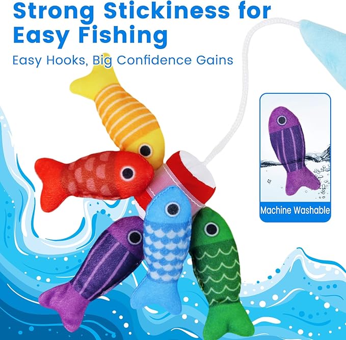 - Montessori & Multi-Skill Development in One Toy: With 22 Pcs, including a fishing pole, 15 pcs cloth fish, 5 pcs stackable fish buckets, and a play mat that doubles as a storage bag. Our baby toy set is thoughtfully designed based on Montessori principles, it encourages kid's natural curiosity. Toddlers build hand-eye coordination while fishing, strengthen fine motor skills through stacking cups, and discover early math concepts by sorting colors and numbers — all through joyful, hands-on exploration perfect educational montessori toys for 1+ year olds boy girl toys