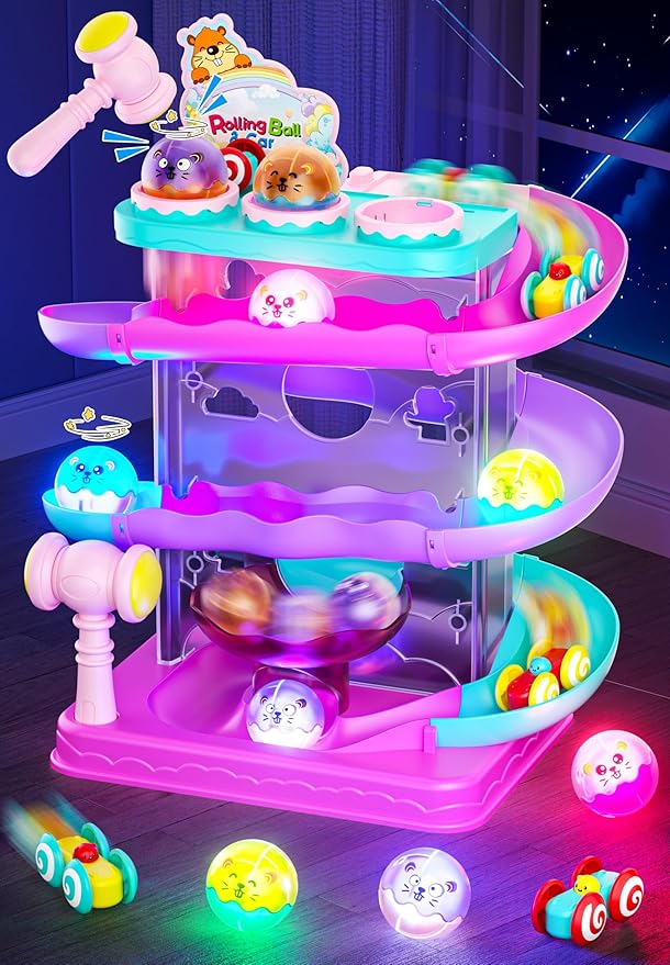 • PROMOTES SENSORY DEVELOPMENT - This pound ball is perfect for hammering practice. The colorful ball and track help children learn color recognition. The ball lights up as it rolls, and tracking the ball's trajectory improves visual tracking.
