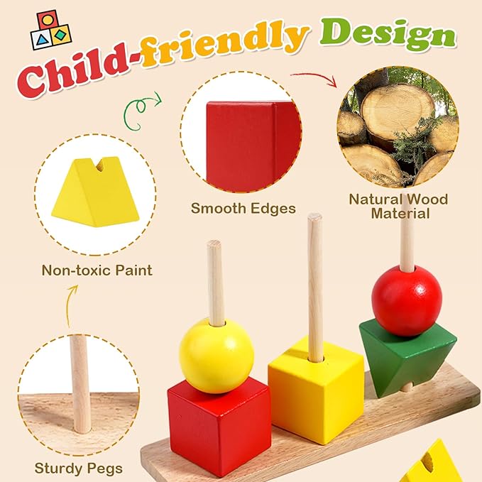 - 【Safe & Child-Friendly Wooden Toy】:Crafted from high-quality natural wood with non-toxic water-based paint, the toy meets strict safety standards (ASTM, CPSIA) with smooth rounded edges and larger block sizes to prevent choking hazards. Sturdy wood base and pegs ensure durability for long-term use, making it a reliable choice for parents.