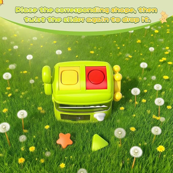 - 【Interactive Play & Repeat Fun】Kids will love pulling the lever or turning the steering wheel to watch the shapes drop into the compartment below. They can then open the flip-top lid by twisting the knob, retrieve the blocks, and start the sorting adventure all over again!