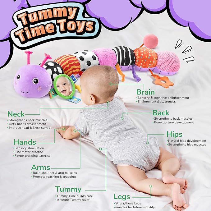 - 【Growth Records and Tummy Time Toys】Exploring play and sensory experiences with baby girl toys during tummy time helps babies develop muscle and bone strength.Featuring a 20-inch ruler on the caterpillar's belly, it serves as a practical tool for parents to record their baby's growth journey, adding joy as the baby grows.