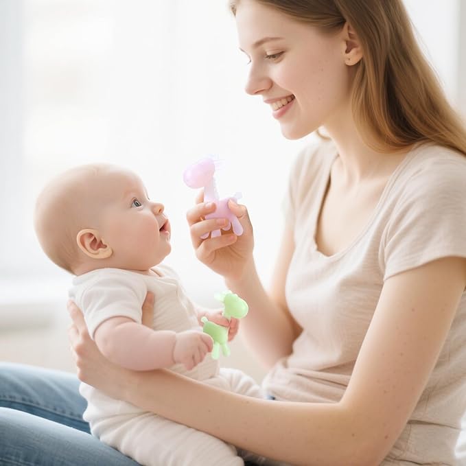TYRY.HU Baby Teething Toys for Babies 0-6 6-12 Months,BPA Free Silicone Giraffe Teethers for Babies 3-6 Months, Soft-Textured Chew Toys Sensory Toys Massaging Teething Relief for Boys Girls,2 Pack