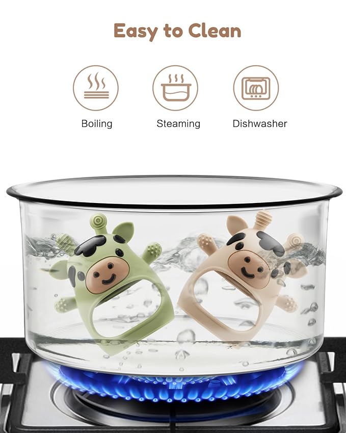 - Easy to Clean: Baby teething toys should be completely cleaned before use to ensure the baby’s safety. You can clean and sanitize this baby hand teether with steam, boiling water or a dishwasher. You can also wash it by hand with warm soapy water