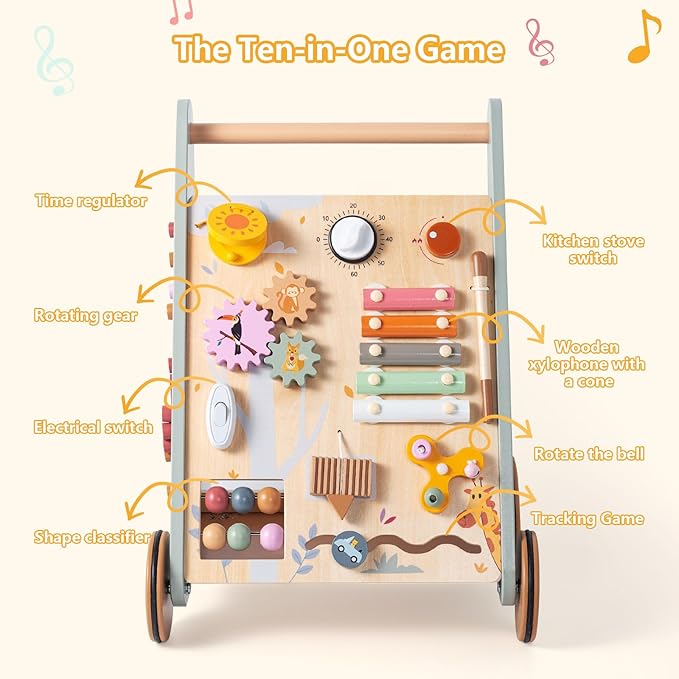 - Premium & Durable Wooden Construction:Built from high-quality, solid wood, this push walker is designed to withstand years of active play. Its robust frame offers exceptional stability and safety, ensuring it remains a trusted companion throughout your child's early walking journey.